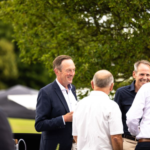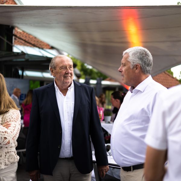 Der Samstagabend stand ganz im Zeichen unseres Jubiläums. Um 17 Uhr begann die große Feier mit einem herzlichen Empfang, bei dem unser Vorstand die Gäste begrüßte. Präsident Werner Siepmann begrüßte um 18 Uhr die Gäste unter denen auch Landrat Mario Löhr, Bürgermeisterin Sabina Müller, Gäste aus befreundeten Golfclubs, ehemalige Präsidenten und Vorstandsmitglieder und natürlich auch unsere Mitglieder waren. Es folgte eine festliche Rede, bei der Werner Siepmann auf die vergangenen Jahre zurückblickte und auch einen Blick in die Zukunft wagte.