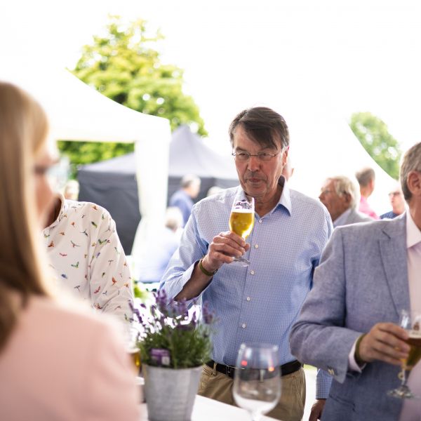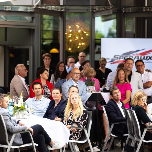Der Samstagabend stand ganz im Zeichen unseres Jubiläums. Um 17 Uhr begann die große Feier mit einem herzlichen Empfang, bei dem unser Vorstand die Gäste begrüßte. Präsident Werner Siepmann begrüßte um 18 Uhr die Gäste unter denen auch Landrat Mario Löhr, Bürgermeisterin Sabina Müller, Gäste aus befreundeten Golfclubs, ehemalige Präsidenten und Vorstandsmitglieder und natürlich auch unsere Mitglieder waren. Es folgte eine festliche Rede, bei der Werner Siepmann auf die vergangenen Jahre zurückblickte und auch einen Blick in die Zukunft wagte.